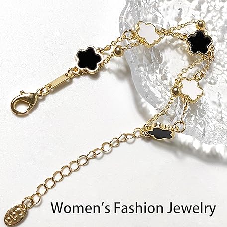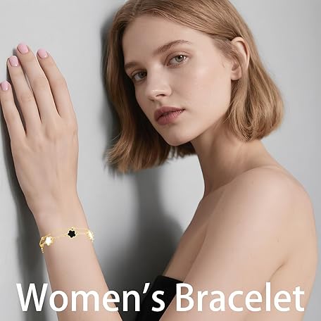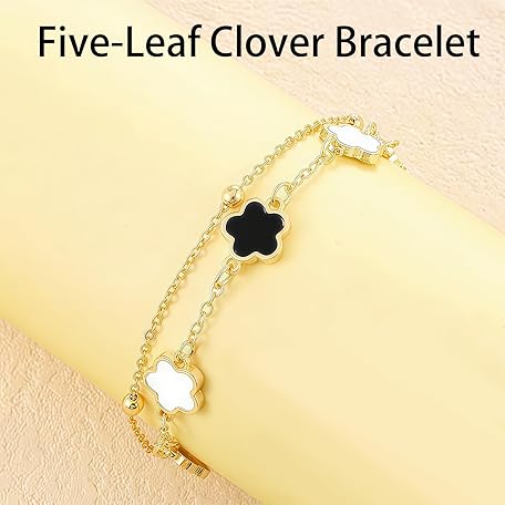 Thông tin sản phẩm Gold Bracelet for Women - Five-Leaf Clover Charm Bracelet Gold,Lucky Multicolored Five-Leaf Clover Bracelet,Stylish Jewelry for Daily Wear & Gifting