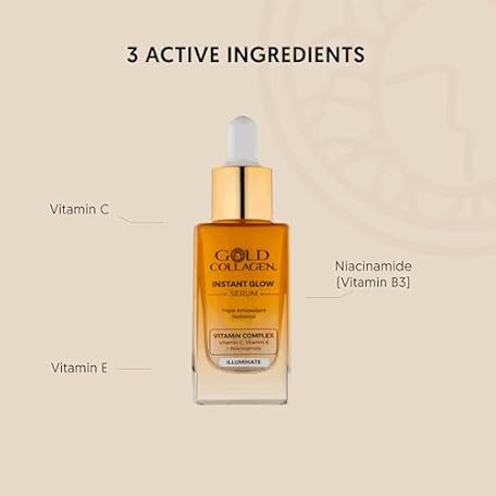 Sản phẩm GOLD COLLAGEN Instant Glow - Vitamin C, Vitamin E, Glycerine & Niacinamide Serum Pore Minimizer & Moisturiser Skincare, Anti Aging Face Serum Against Wrinkles, Triple Antioxidant Action Skin Care 30ml đang được bán với giá ưu đãi là $52.3309 tại nước Anh.