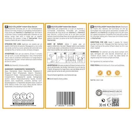 Thông tin sản phẩm GOLD COLLAGEN Instant Glow - Vitamin C, Vitamin E, Glycerine & Niacinamide Serum Pore Minimizer & Moisturiser Skincare, Anti Aging Face Serum Against Wrinkles, Triple Antioxidant Action Skin Care 30ml