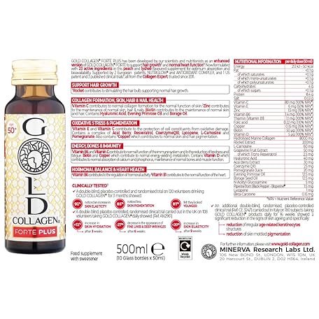 Thông tin sản phẩm GOLD COLLAGEN New Forte Plus - Collagen Supplements for Women & Men with Biotin Hair Growth, Skin & Immune System Booster with 8g of Marine Collagen, Vitamin C & Hyaluronic Acid, 1 Pack 10x50ml