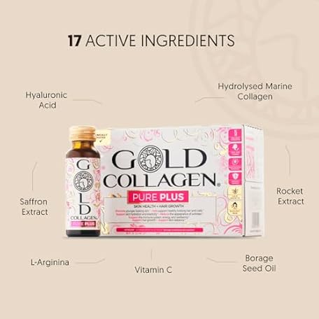 Sản phẩm GOLD COLLAGEN New Pure Plus - Collagen Supplements for Women & Men, Biotin Hair Growth, Skin, Nail, Hormonal Balance, Immune System Booster 8g Marine Collagen Vitamin C Hyaluronic Acid, 1 Pack 10x50ml đang được bán với giá ưu đãi là $57.4212 tại nước Anh.