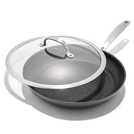 Good Grips Pro 12" Frying Pan Skillet with Lid, 3-Layered German Engineered Nonstick Coating, Stainless Steel Handle, Dishwasher Safe, Oven Safe, Black