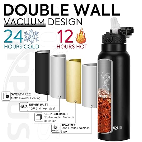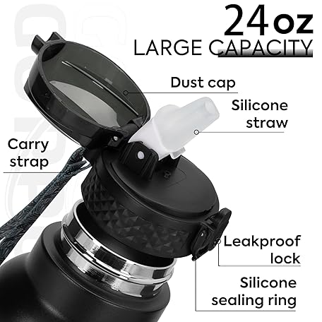 Sản phẩm GOPPUS 750ml/26oz Stainless Water Bottle with Straw Double Wall Insulated Bottles with Strap Reusable Vacuum Thermal Flask Leakproof Keep Cold Drinks Bottles with Flip Top Lid for Men Women BPA Free đang được bán với giá ưu đãi là $16.0012 tại nước Anh.