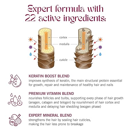 Thông tin sản phẩm Gorgeous Grow - Hair Growth and Nails Strengthening, Keratin Hair Vitamin with Biotin, Hair Thickening Supplement for Women, 60 Capsules 2 Months Supply