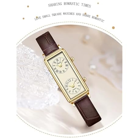 Thông tin sản phẩm Gosasa Women’s Vintage Rectangle Watch Dual Time Zone Waterproof Ladies Quartz Analog Wristwatch with Two Dials, Roman & Arabic Numerals, Leather Strap for Travel & Business