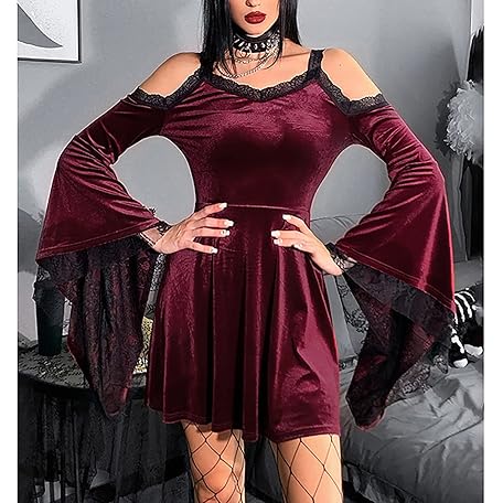Sản phẩm Gothic Flare Sleeve High Waist Sexy Mini Dress Harajuku Cold Shoulder Velvet Punk Halloween Autumn Y2K Dresses đang được bán với giá ưu đãi là $23.3478 tại nước Anh.