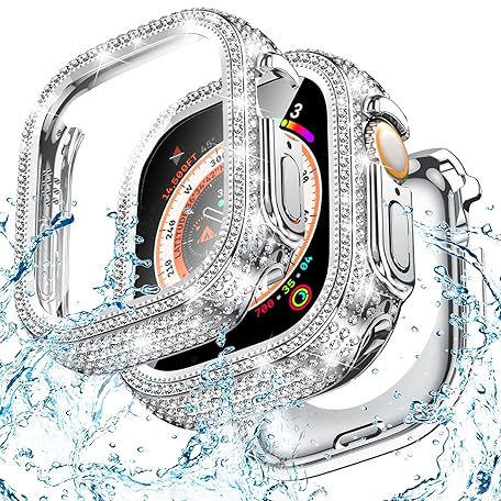 Goton 49mm Waterproof Bling Case for Apple Watch Ultra 3/2/1 Screen Protector 49 mm, Sparkling PC Front Bumper & Hollow Back for iWatch Cover, Splash-Resistant, Easy Install