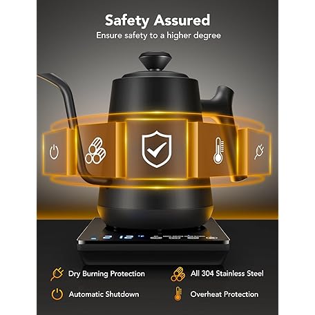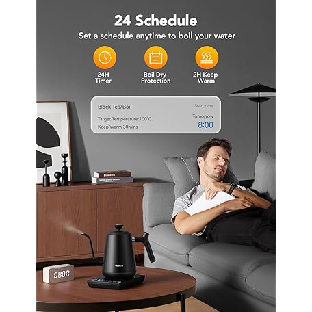 Thông tin sản phẩm GoveeLife Smart WiFi Electric Kettle with LED Display, Variable Temperature Control, 0.8L, Alexa Compatible - Stainless Steel, Matte Black