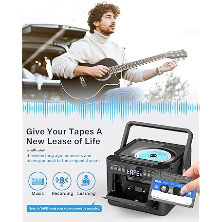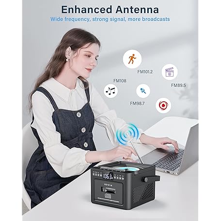 Thông tin sản phẩm Greadio Portable CD Player for Home, Rechargeable Boombox Cassette Player, FM Radio CD Player with Bluetooth, 5000mAh Battery, Remote Control, USB, AUX, TF/SD Card, 5W Dual Stereo Speaker (Black)