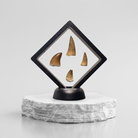 GreatGift 4 Mosasaurus teeth in Display - Mosasaurus teeth with accompanying information - Dinosaur - Sea eptile - Fossil