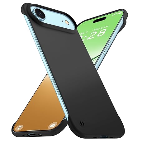 GRECAZO Slim Borderless for iPhone Air Phone Case 6.5"(2025) Ultra-Thin Lightweight Frameless Matte Hard PC Cover Case with Pull Ring Minimalist Non Slip Rope,Suppor Wireless Charging-Black