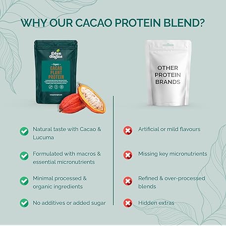 Thông tin sản phẩm Green Origins Organic Super Cacao Plant Protein Powder| 66% Protein | 10 Servings, 300g | Vegan, Dairy Free, Gluten Free, No Added Sugar