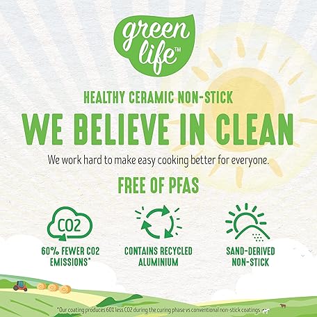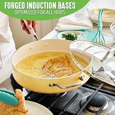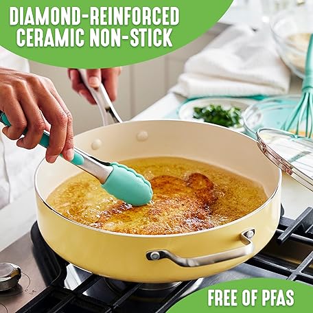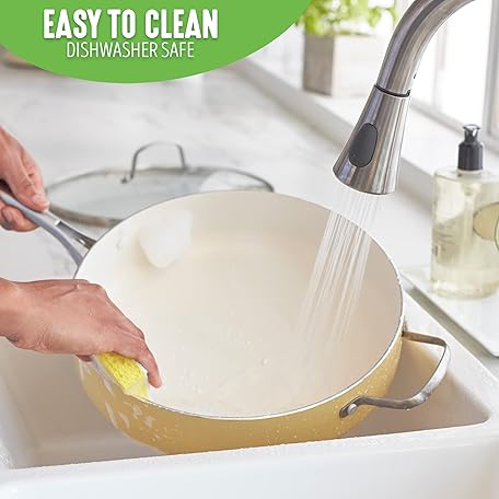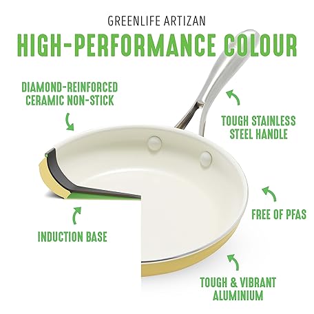 Thông tin sản phẩm GreenLife Artizan Healthy Ceramic Non-Stick 30 cm/4.8 Litre Sauté Pan Jumbo Cooker with Helper Handle and Lid, Stainless Steel Handle, Induction, PFAS Free, Oven Safe, Yellow