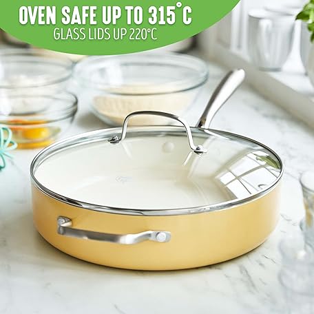 Sản phẩm GreenLife Artizan Healthy Ceramic Non-Stick 30 cm/4.8 Litre Sauté Pan Jumbo Cooker with Helper Handle and Lid, Stainless Steel Handle, Induction, PFAS Free, Oven Safe, Yellow đang được bán với giá ưu đãi là $28.6234 tại nước Anh.