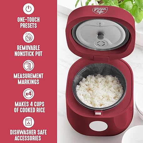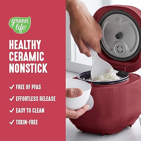 Thông tin sản phẩm GreenLife - Digital rice cooker, 2 cups uncooked/4 cooked rice, PFAS and PFOA free, removable dishwasher safe ceramic, healthy cooking, automatic presets and keep the