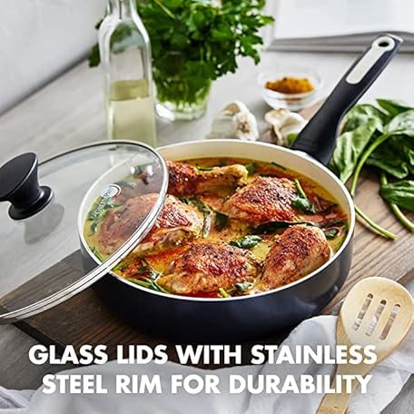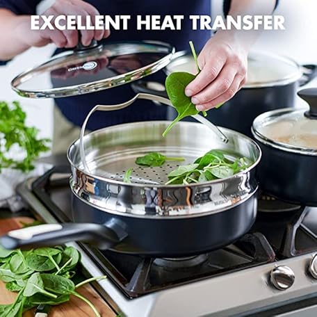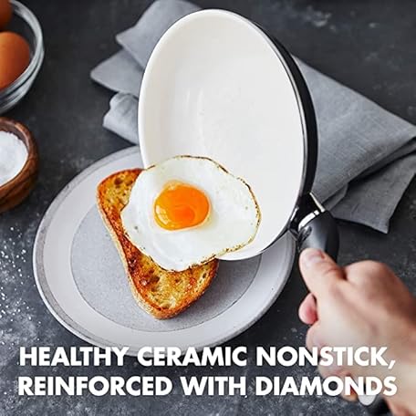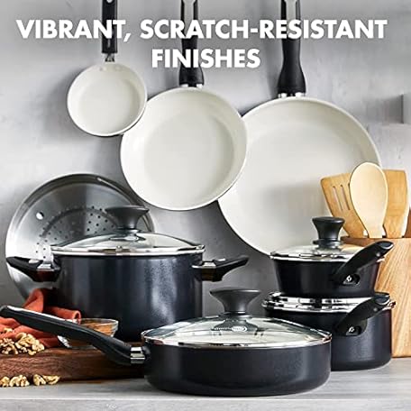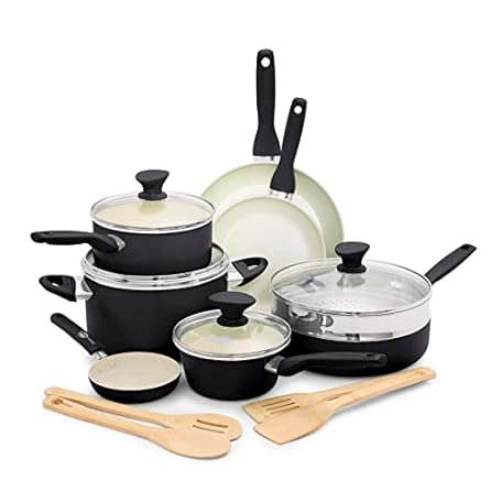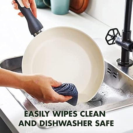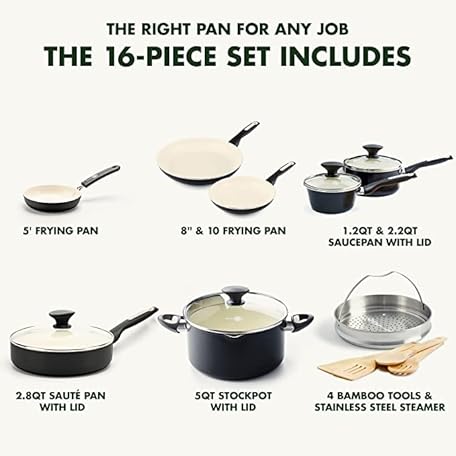 GreenPan CC002639-001 Rio PFAS Free Ceramic Non-Stick Cookware Pots and Pans Set, Black & Cream