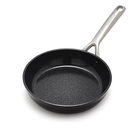 GreenPan GP5 Hard Anodized Healthy Ceramic Nonstick 8" Frying Pan Skillet, Heavy Gauge Scratch Resistant, Stay Flat Surface, Induction, Mirror Finish Handle,Oven Safe, PFAS-Free, Black