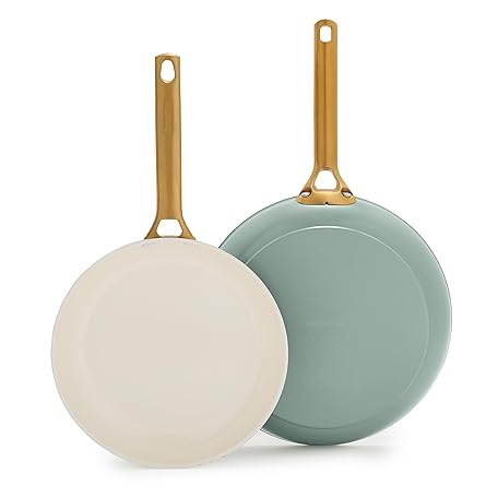 GreenPan Nonstick Reserve Pro 10” & 12” Frying Pan Set, NSF Certified Ceramic, Hard Anodized PFAS-Free Skillets, Stainless Steel Handles, Oven & Dishwasher Safe, Moss Green