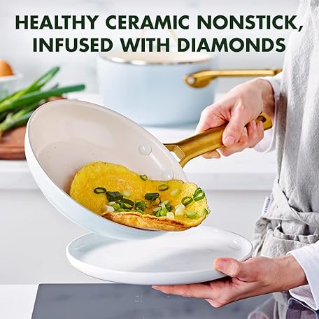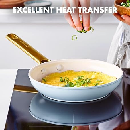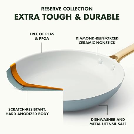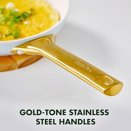 Thương hiệu Greenpan là cái tên nổi tiếng được rất nhiều khách hàng trên thế giới chọn lựa. Với kiểu dáng đẹp mắt, sang trọng, sản phẩm GreenPan Reserve Hard Anodized Healthy Ceramic Nonstick 20 cm and 26 cm Frying Pan Skillet Set, Gold Handle, PFAS-Free, Induction Suitable, Oven Safe, Light Blue là sự lựa chọn hoàn hảo nếu bạn đang tìm mua một món cho riêng mình.