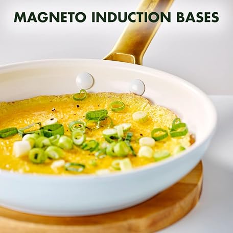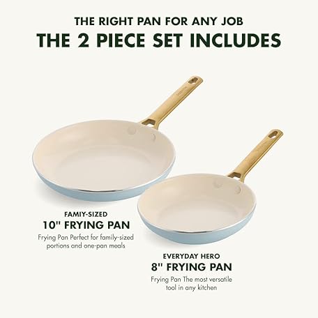 Thông tin sản phẩm GreenPan Reserve Hard Anodized Healthy Ceramic Nonstick 20 cm and 26 cm Frying Pan Skillet Set, Gold Handle, PFAS-Free, Induction Suitable, Oven Safe, Light Blue