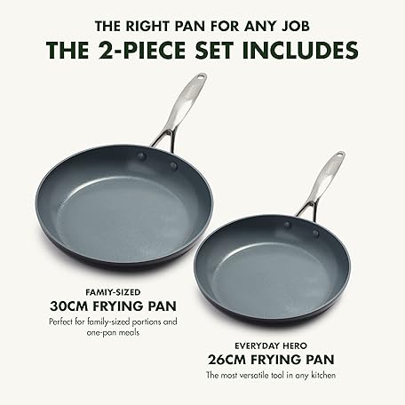 Thông tin sản phẩm GreenPan Valencia Pro Hard Anodised Healthy Ceramic Non-Stick 2-Piece Frying Pan Skillet Set, 26 cm and 30 cm, PFAS-Free, Induction, Oven Safe, Grey