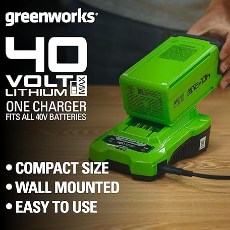 Thông tin sản phẩm Greenworks 40V Cordless Lawn Rake Dethatcher, 3600rpm, 36cm Working Width, 30L Collection Box & 40V Battery Charger. 40V Universal Charger for Garden and Power Tools. Charges 2Ah Batter