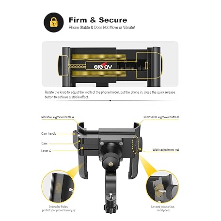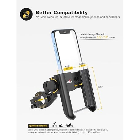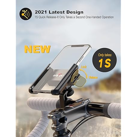 Thông tin sản phẩm GREFAY Bike Phone Mount Motorcycle Phone Holder 【1S Quick Release】 Bicycle Phone Clamp with 360 Rotation for iPhone 16 15 14 Pro Max Plus, 13 12 11 Pro Max Mini, Xs XR X, SE, 4.0-7.0” Cellphone