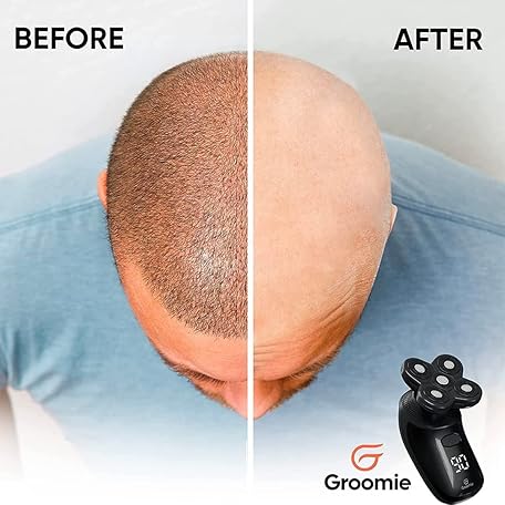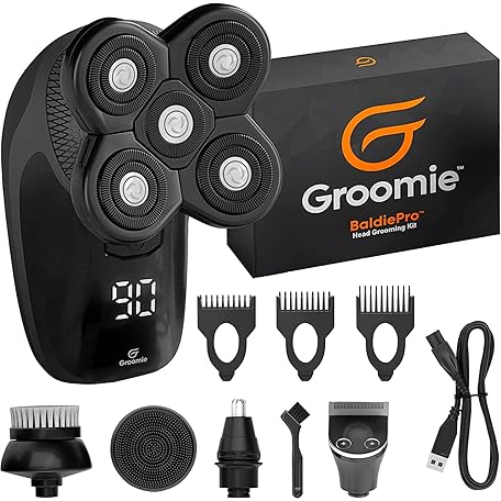 Thông tin sản phẩm GROOMIE BaldiePro Electric Skull Shaver for Men & Women - 10,000 RPM Motor Head Shaver with Rotary Blades - IPX7 Waterproof Wet/Dry Shaver for Bald Heads - Rechargeable Nose & Ear Clipper/Trimmer