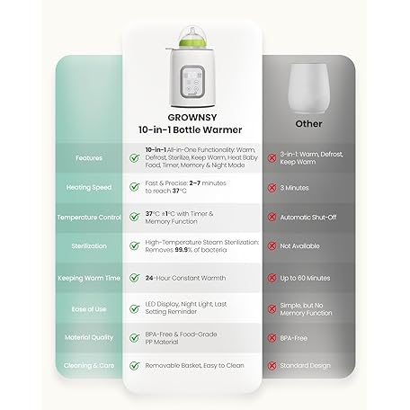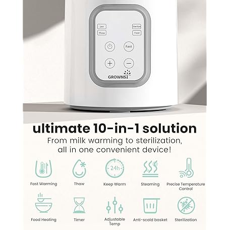 Thông tin sản phẩm GROWNSY Bottle Warmer 10-in-1 Fast Baby Bottle Warmer and Steriliser, for All Bottles, Milk Warmer for Breastmilk or Formula, BPA-Free, Smart Temperature Control and Automatic Shut-Off