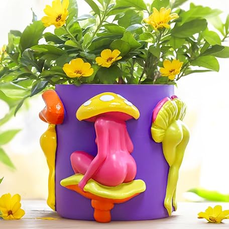 GUGUGO Mushroom Female Body Planters, Quirky Unique Cute Plant Pots and Funny Boho Eclectic Home Decor, Mushroom Butt Flower Pots, Indoor Succulent Planter, Modern Aesthetic for Decorating, Purple