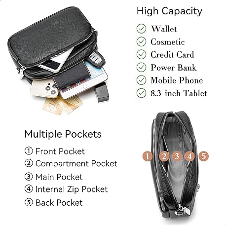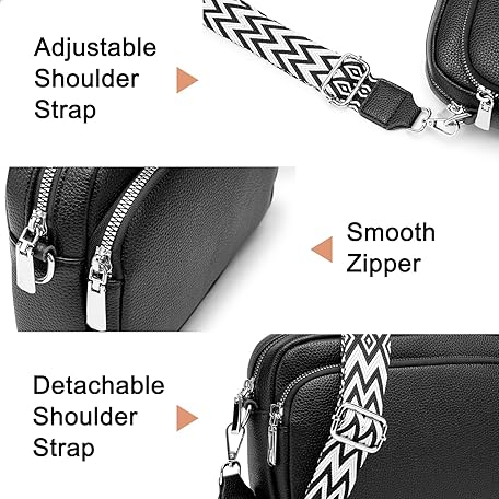 Thông tin sản phẩm GUQTLUN Crossbody Bags for Women, Leather Shoulder Bag with 3 Zip Compartments, Small Messenger Bag Phone Bag, Women's Cross-Body Bags with Adjustable and Removable Wide Strap