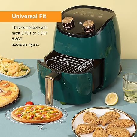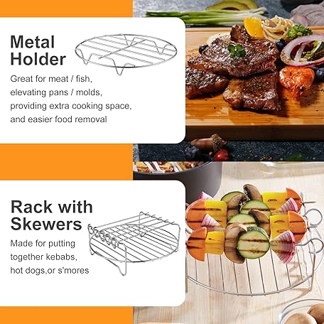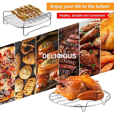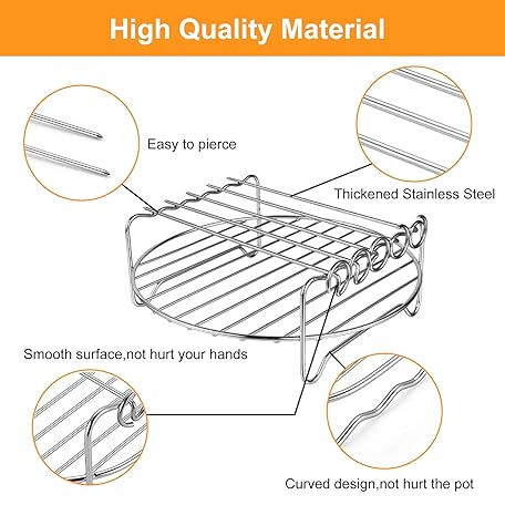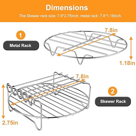 Thông tin sản phẩm GWY Air Fryer Rack 2 Pack, XL Air Fryer Accessories Metal Holder with Skewer, Multi-purpose Double Layer Rack for Gowise USA, Cosori, Cozyna, Philips Air fryer, Dishwasher Safe