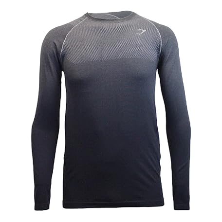 GYMSHARK Mens Vital Ombre Long Sleeve T-Shirt, Smokey Grey Marl/Black, Small
