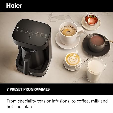 Thương hiệu Haier là cái tên nổi tiếng được rất nhiều khách hàng trên thế giới chọn lựa. Với kiểu dáng đẹp mắt, sang trọng, sản phẩm Haier Home Barista Hot Drinks Machine & Frother, I-Master Series 5 All-in-One Coffee Machine, Hot Chocolate & Hot Drinks with Accessories, hOn App, Black [HMB5A] là sự lựa chọn hoàn hảo nếu bạn đang tìm mua một món cho riêng mình.