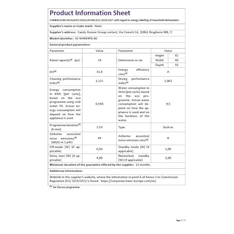 Thông tin sản phẩm Haier XS 4A4M4PB-80 I-Pro Shine Series 6 Integrated Dishwasher, 14 place Setting, Black Bezel, A Rated
