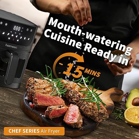 Thương hiệu HAIMEEC là cái tên nổi tiếng được rất nhiều khách hàng trên thế giới chọn lựa. Với kiểu dáng đẹp mắt, sang trọng, sản phẩm HAIMEEC Air Fryer 6L, 8 cooking options, Visual Window, Max temp 220°C, Nonstick Basket, Digital touchscreen, Easy clean, Shake Reminder, Quiet60dB for Healthy Cooking là sự lựa chọn hoàn hảo nếu bạn đang tìm mua một món cho riêng mình.
