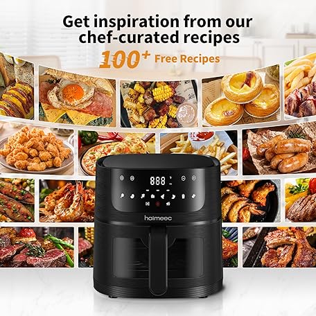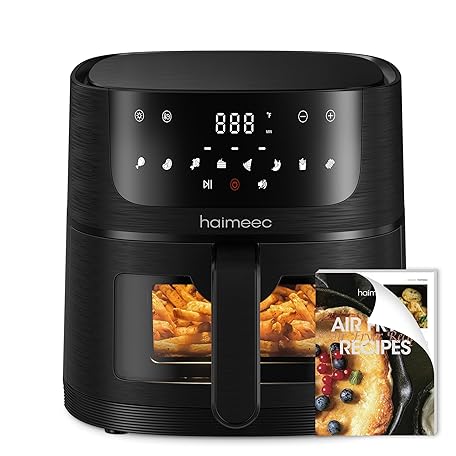 Thông tin sản phẩm HAIMEEC Air Fryer 6L, 8 cooking options, Visual Window, Max temp 220°C, Nonstick Basket, Digital touchscreen, Easy clean, Shake Reminder, Quiet60dB for Healthy Cooking