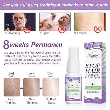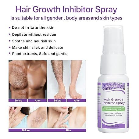 Thông tin sản phẩm Hair Growth Inhibitor, Non-Irritating Hair Inhibitor, Hair Stop Growth Spray, Permanent Hair Removal Spray for Underarm, Arm, Leg, Bikini Areas, Body, Face, Painless for Men and Women