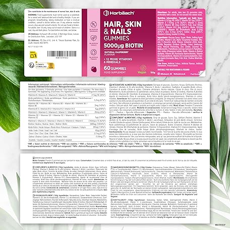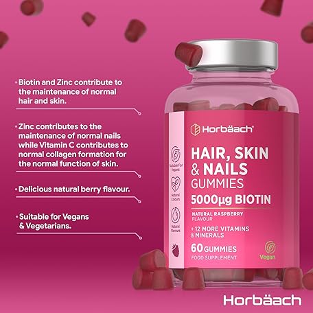 Sản phẩm Hair Skin and Nails Vitamins | 5000mcg Biotin | Hair Growth Vitamins | with Added Zinc, Vitamin C, E & More! 60 Vegan Gummies | Supplement for Women and Men | by Horbaach đang được bán với giá ưu đãi là $14.497 tại nước Anh.