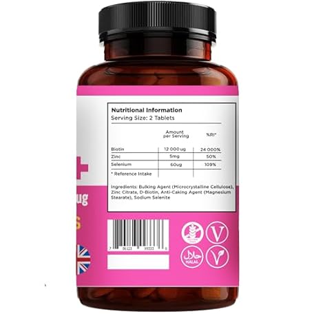 Sản phẩm Hair Skin and Nails Vitamins with Biotin, | Biotin Hair Growth | Zinc and Selenium | 180 Vegetarian Tablets | Beauty Supplement for Women and Men | Halal Vitamins |- UK Made by Halo Nutrtion đang được bán với giá ưu đãi là $18.9987 tại nước Anh.