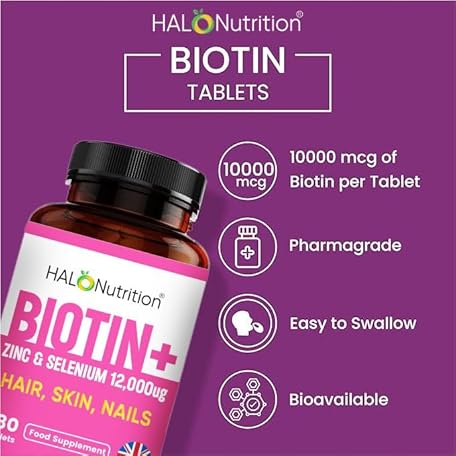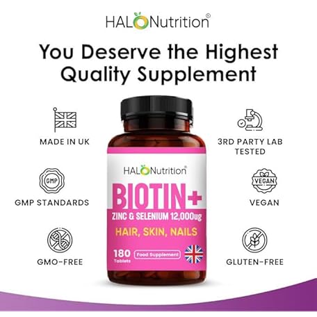 Thông tin sản phẩm Hair Skin and Nails Vitamins with Biotin, | Biotin Hair Growth | Zinc and Selenium | 180 Vegetarian Tablets | Beauty Supplement for Women and Men | Halal Vitamins |- UK Made by Halo Nutrtion