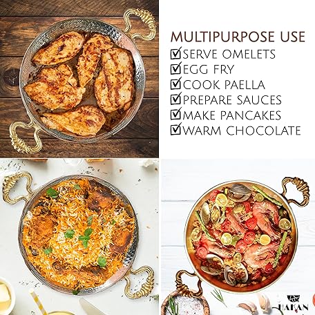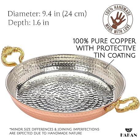 Thương hiệu Hakan là cái tên nổi tiếng được rất nhiều khách hàng trên thế giới chọn lựa. Với kiểu dáng đẹp mắt, sang trọng, sản phẩm Hakan Copper Round Chef Pan | Traditional Ottoman Style Handmade Frying Pan | Authentic Design Hand-Crafted Hammered Copper Sahan | Turkish Egg Omelet Skillet, 9.4” là sự lựa chọn hoàn hảo nếu bạn đang tìm mua một món cho riêng mình.