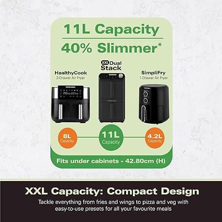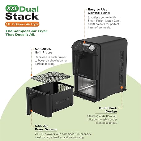 Thông tin sản phẩm Hamilton Beach Air Fryer, 11L, Double Stack, 2460W, XXL, Space Saving Design, 9 Cooking Functions, Family Size, Non-Stick Dishwasher Safe Baskets, Black - HBA11B