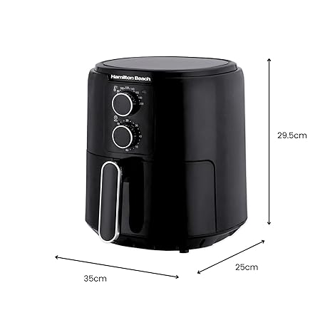 Thông tin sản phẩm Hamilton Beach Air Fryer, 4.2L, SimpliFry, 1300W, Manual Controls, Adjustable Temperature, Adjustable Timer, 60 Min Timer, Energy Saving, Fry, Roast, Bake, Broil, Reheat, Black - HB4001