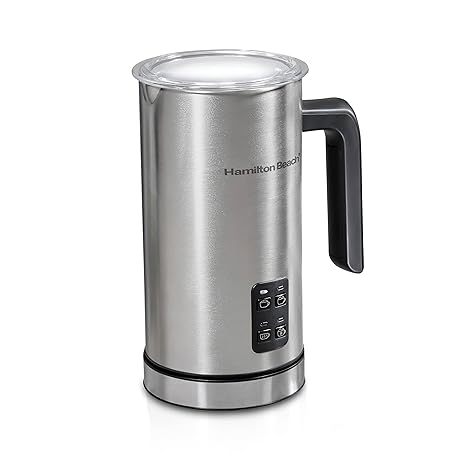 Hamilton Beach Electric Milk Frother & Warmer, Automatic Warm or Cold Foam, 5-10 oz., Create Café-Quality Coffee, Latte, Cappuccino, Frappe, Hot Chocolate, 4 Settings, Stainless Steel (43565C)
