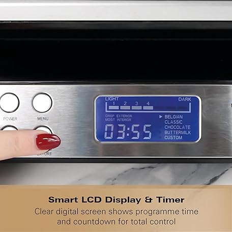 Thông tin sản phẩm Hamilton Beach Pro Smart Waffle Maker, Non-Stick, 7 Browning Levels, 5 Programmes, Family Size, Digital Display, Overflow Protection - HB5403T, Silver