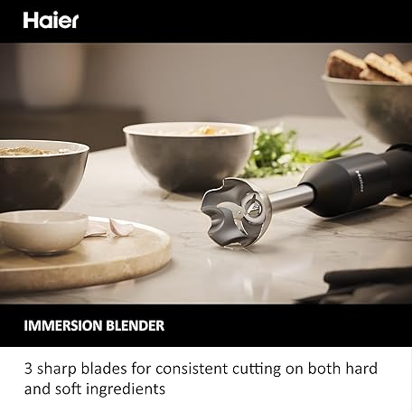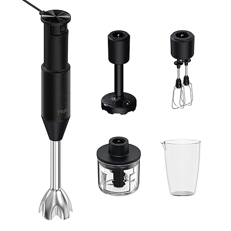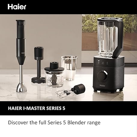 Thông tin sản phẩm Haier Hand Mixer, I-Master Series 5 Electric Hand Blender, 4-in-1 Whisk, Masher, Chopper & Blender, Double Power Blades, 1000W, hOn App, Black [HHB5B5 S5]