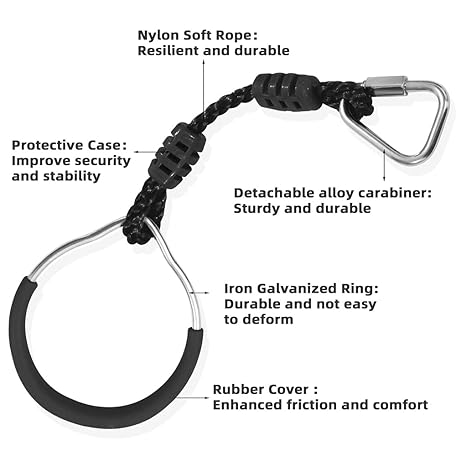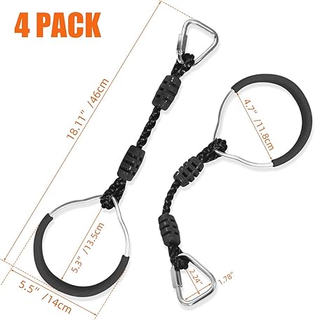 Thông tin sản phẩm Hanging Ninja Gymnastic Ring Swing Monkey Bar Climbing Bar Jungle Fist For Outdoor Indoor Backyard Activities, 4 Black Obstacle Course Rings Kids Boys Adults Men Playground Training Equipment Play Set