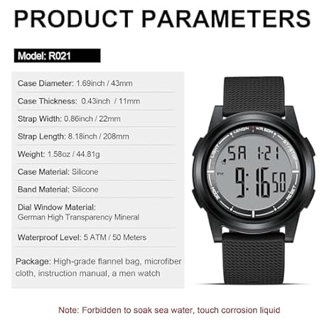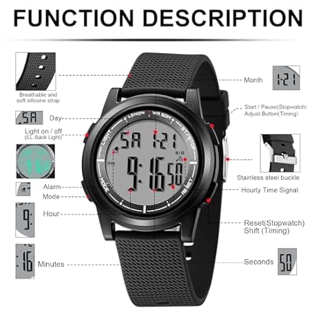 Sản phẩm HANPOSH Mens Watches Digital Watches for Men Waterproof Wrist Watch Sports Watch with EL Backlight/Stopwatch/Alarm đang được bán với giá ưu đãi là $14.3444 tại nước Anh.
