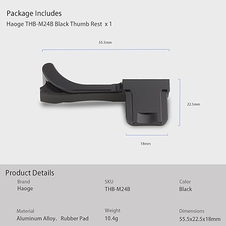 Thông tin sản phẩm Haoge THB-M24B Metal Hot Shoe Thumb Up Rest Thumbs Up Hand Grip Designed for Leica M Typ240 M240, M-P Typ 240 M240P, M Typ262 M262, M-D Typ 262 Camera Black Better Balance & Grip Convenience